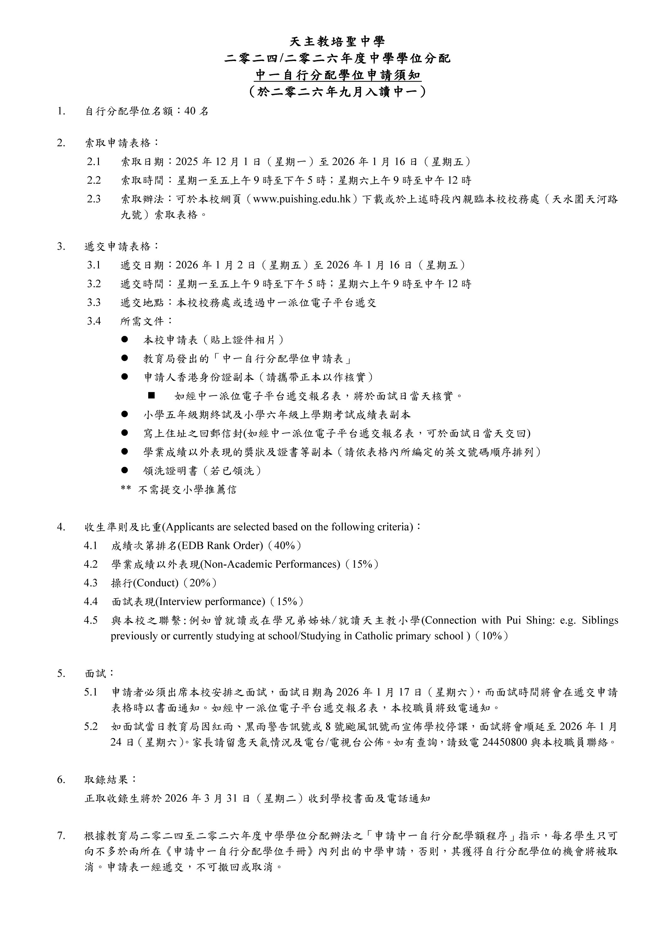 2025-2026 中一插班,可致電852-24450800向梁副校長查詢