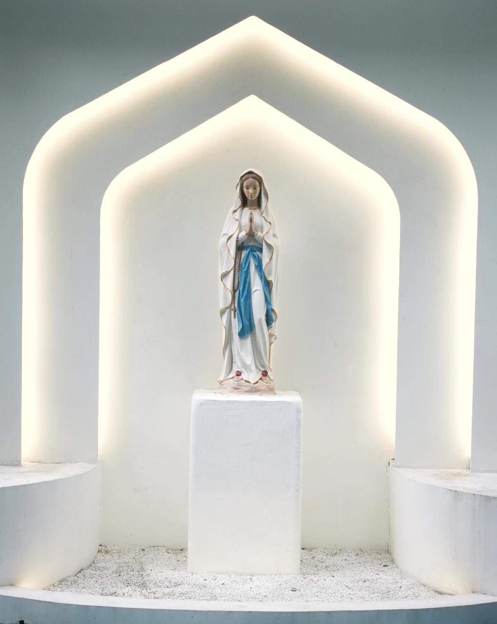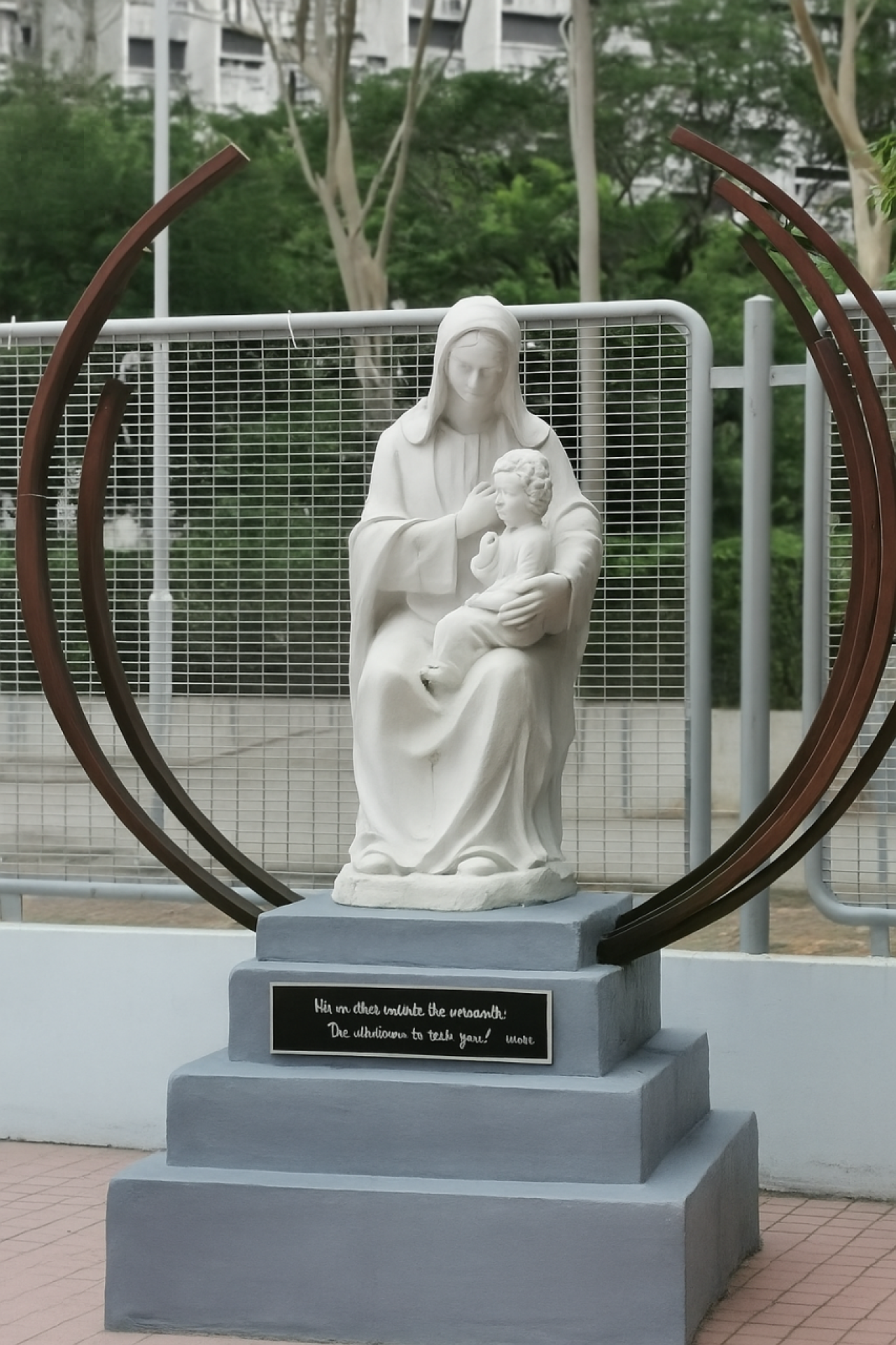 為加強天主教教育的宗教幅度,提升同學對天主教聖人的認識,教導學生效法聖人的芳表善渡豐盛人生,本校於2021年由全體公教老師初選出五位與本校特色和學生特質相關的聖人,在課堂中讓同學認識聖人們的生平及事蹟。並於2022年透過問卷收集全校師生的意願,選出「玫瑰聖母」為本校主保聖人。為加強全校師生與聖母媽媽的相遇及感受聖母媽媽的温良和關愛,本校於2023年為正門聖母岩中多年來已減褪色調的露德聖母像進行了修復工程,並於2023年在排球場添置一座全新的聖母聖嬰石像,讓校園內不同角落的師生容易看到聖母懷抱耶穌聖嬰的温良和愛,提醒大家謹記聖母的德行,就如聖若望福音第2章5節記載耶穌的母親說:「他無論吩咐你們什麼,你們就作什麼。」此外,每年10月的早會學校亦會舉行玫瑰月獻花禮儀,由校長、老師及學生代表向聖母像獻花。