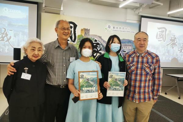 2023-06-26 本校在「國。家。我」短片比賽獲得獎項培聖公民科大使黃楚穎及廖美婧同學參加勵進教育中心舉辦的「國。家。我」短片比賽,在眾多參賽隊伍中,分別獲得第六名及資料搜集大獎。在頒獎典禮中,得獎同學與前律政司司長梁愛詩女士、校友梁紀昌校長及高志森導演合照留念。