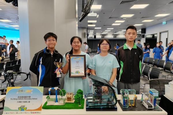 2023-08-03 我校科創藝術班同學4B何盈嫣、4B林倩行、5B朱兆邦及5D郭浚晞本年度參加由香港中華電力有限公司舉辦的「中電智能都會創新能源比賽2022-2023」中獲取優異奬及最佳模型奬。是次為全港性比賽,參賽學校多達數70多間,我校同學能夠在云云70多間學校中脫穎而出獲取佳績,實在付出了不少努力。