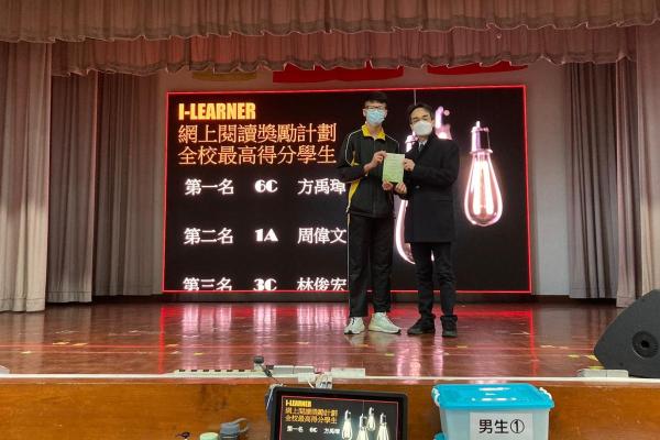2023-02-06 上學期的I-Learner網上閱讀獎勵計劃結束,全校最佳表現班別和全校最高得分學生如下: 全校最佳表現班別 1A 2C 1B 林俊宏 (10) 全校最高得分學生6C方禹璋 (6) 1A周偉文 (3) 3C林俊宏 (10) 另,各級表現最佳的頭三名學生,均獲得「智好學計劃」的優秀學員獎, 得獎名單如下: