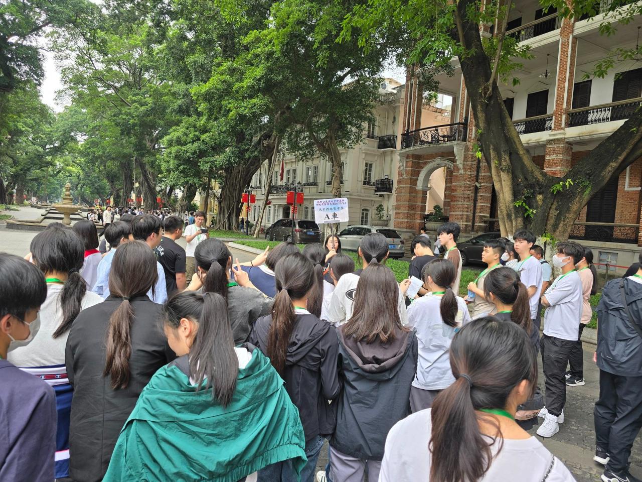 是次內地學習團由十位老師帶領全體中五級學生到廣州和東莞多個景點進行參訪活動。行程的第一天早上,我們乘搭專巴由學校前往西九龍高鐵站,再乘搭高鐵直接前往虎門。不少同學是第一次乘搭高鐵,皆表示高鐵座位舒適、車箱清潔、行車快捷和穩定,讓他們留下深刻印象。高鐵之旅亦讓同學得以親身體驗國家近年在交通運輸領域的進步。到達虎門後,我們先到沙面島參觀。沙面島在中國積弱時期被劃為英法租界,也曾為各國領事館的所在地,四週佈滿不少西方風格的建築。沙面建築群見證了列強侵華時期的歷史,也讓同學明白作為國民須肩負守土衛國的責任。