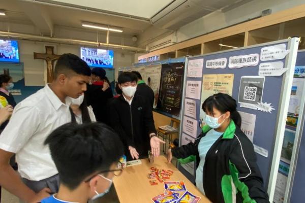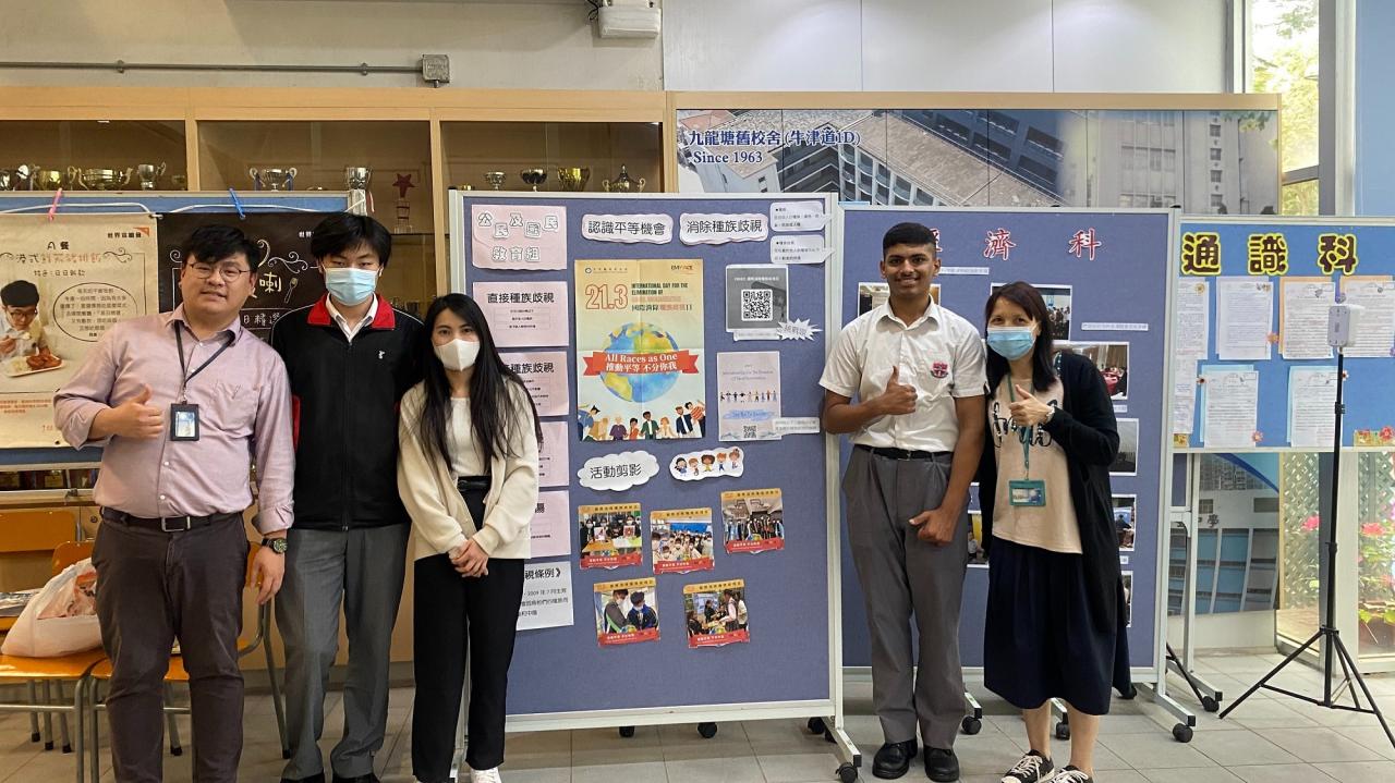 2023-03-21 本校公民及國民教育組於2023年3月20日及3月21日舉辦「國際消除種族日」的相關活動,致力向學生和教職員推動種族平等共融的重要性。一連兩天的活動中包括早會的分享及午間的問答環節,同學們通過閲讀展板上的内容,回應問答,從而對種族歧視的情況有更深入的瞭解,亦建構了他們重視種族共融的價值。