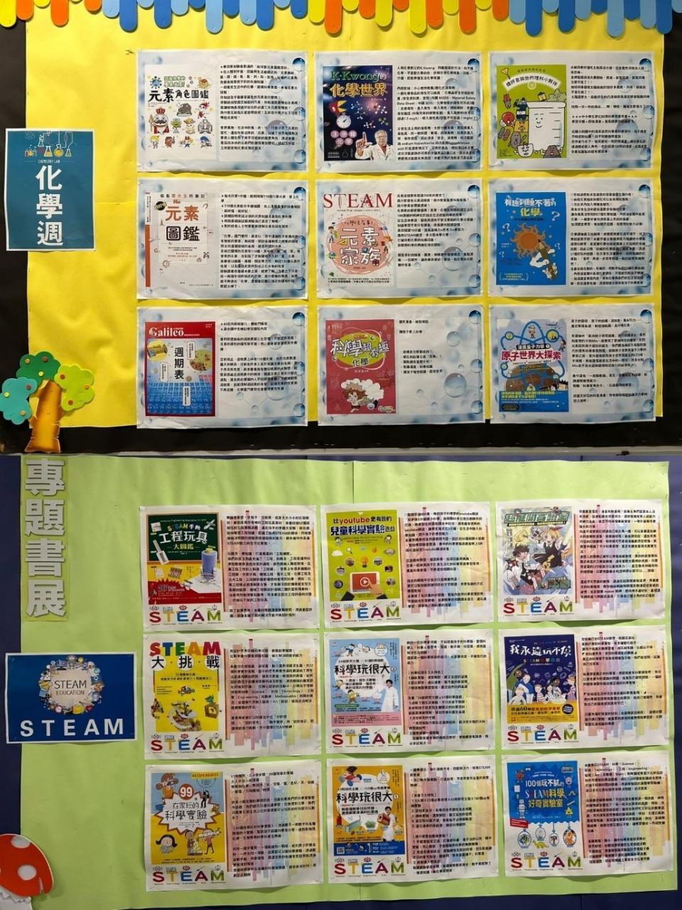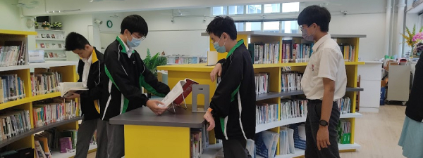 在閱讀週期間,初中各班均到圖書館進行一節的圖書館課。透過遊戲,讓同學學習分辨不同學習領域的圖書,了解圖書館的不同區域的功用及明白杜威圖書分類方法的運用。同學亦參觀了圖書館展出的三個專題書展:1.「公民教育週」、2. 「化學:金屬及元素」、3.「STEM:遊戲」專題書展,書籍吸引,題材廣泛,同學獲益良多。
