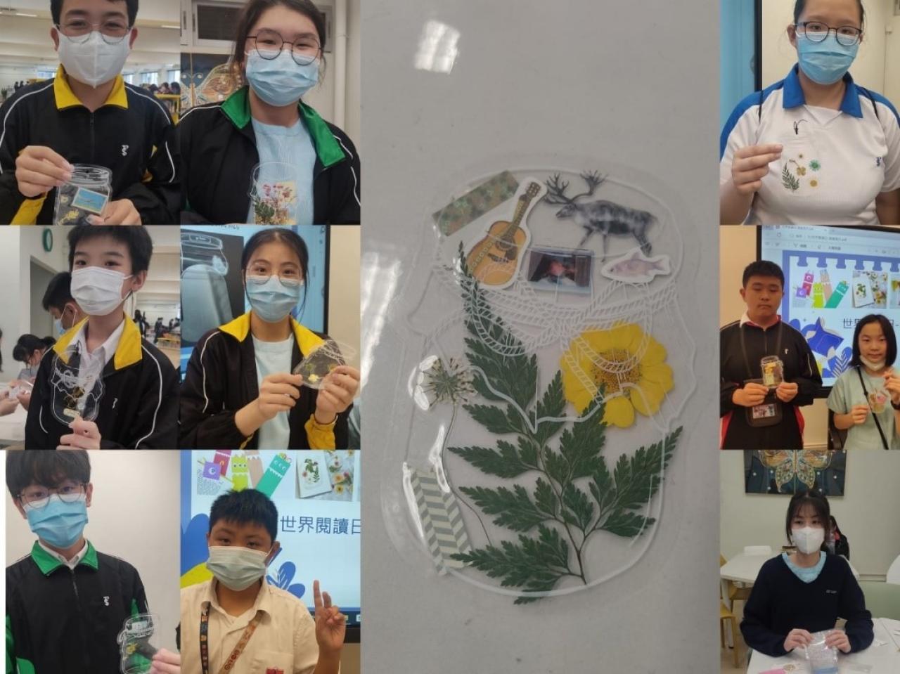為配合專題書展,圖書館於4月24及4月27日的午膳時間舉辦了「金屬押花書簽」製作活動,同學自由起選取喜歡的金屬、乾花、貼紙等素材,發揮想像,製作喜歡的金屬書簽。同學的書簽作品美感與創意十足,是閱讀的好幫手、書本的好朋友。