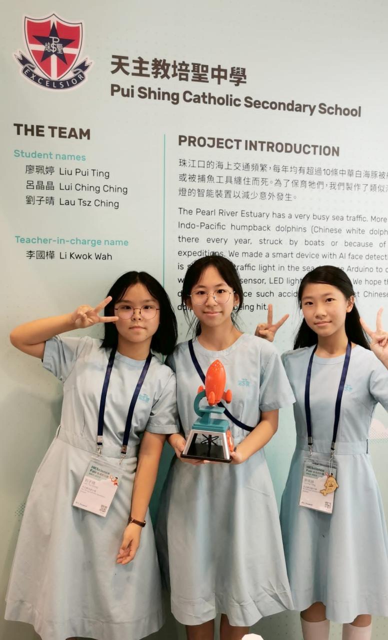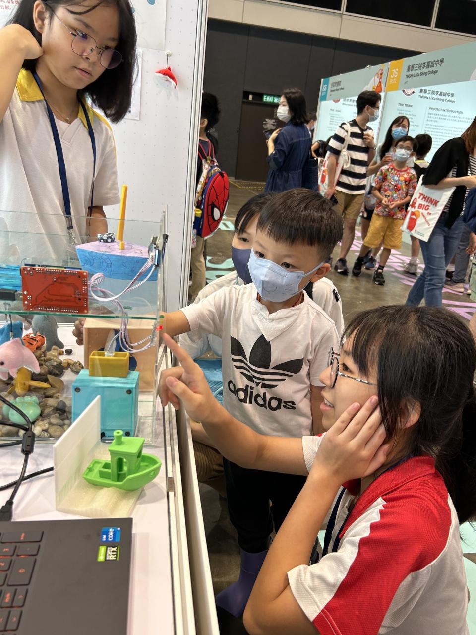 參賽同學除了向評審介紹作品理念外,更需要運用兩文三語、生動有趣的表達技巧向不同國籍、年齡的到場人士講解。展期三天內,有近二萬名人士入場參觀,他們以一人一票形式投選最喜歡的作品。最後,本校參賽同學憑「公海保衞豚」榮獲初中組優異獎及最受歡迎設計大獎。