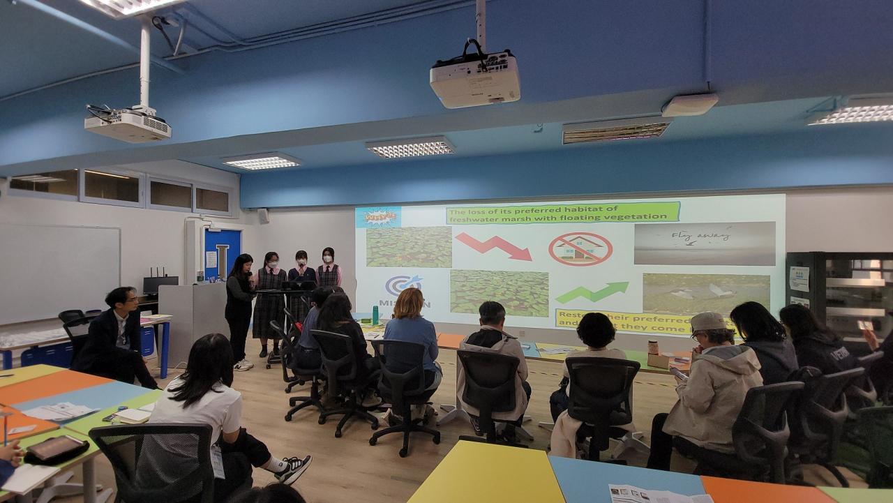 南韓仁川廣域市教育廳官員、東亞-澳大利西亞遷飛區夥伴關係(EAAFP)秘書處代表及來自南韓仁川不同中學的老師和學生,一行24人,於2024年1月10日到訪本校,交流和分享本校老師和學生與世界自然基金會(WWF)合作參與環境保育活動的經驗,以及參觀學校的環保設施。