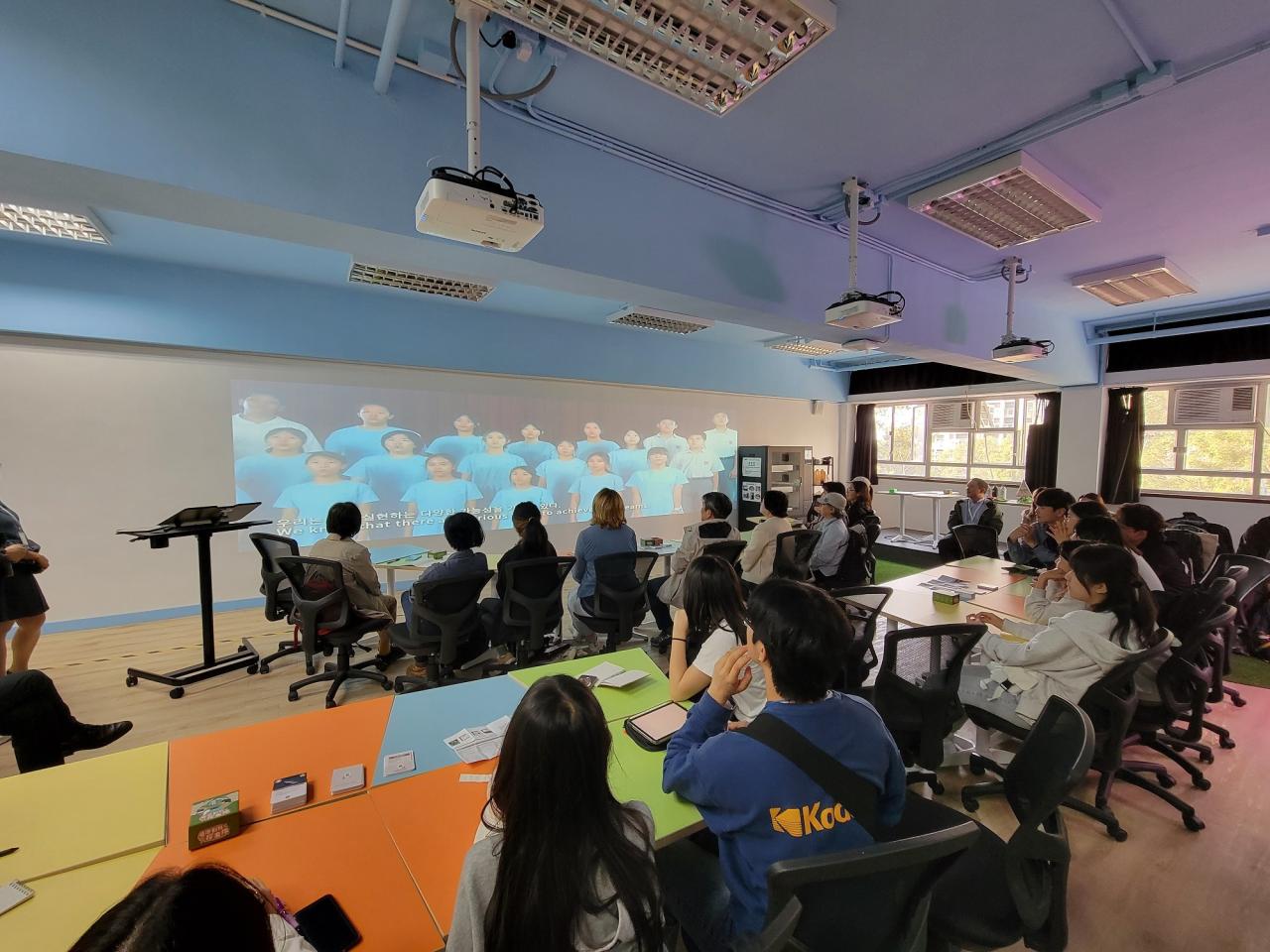 參訪團欣賞配有韓文字幕的校慶主題曲「培」你飛翔MV