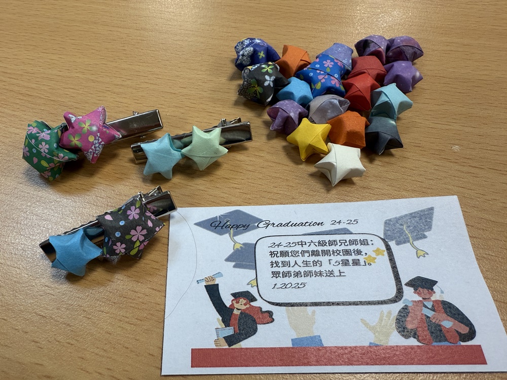 2025-01-24 為中六同學送祝福中六級畢業祈禱會於一月二十四日舉行,本年度主題為「有情.友.義」,由校監李志源神父主禮。校監勉勵各畢業生要銘記師生的情誼,不怕要害困難。另一方面,不應只滿足於就讀「培聖」,而是發揮天主賜予的能力,讓學校以同學為榮。宗教組同時為應屆中學文憑試考生打氣,收集全校老師、社工姑娘及學弟學妹製作的幸運星,給中六級師兄師姐送上祝福,祝願他們擁有五星星的人生。
