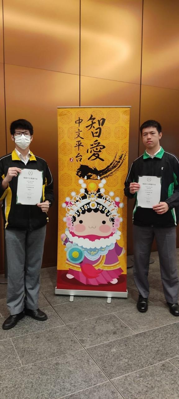 2023-03-27 恭喜6C方禹璋及3C林俊宏同學榮獲I-Learner智愛中文第三十七屆「i-Learner智好學計劃」全港最佳表現優秀學員獎。方禹璋、林俊宏同學以及老師、家長,已出席二零二三年三月二十六日 (星期日)於香港故宮文化博物館舉行的頒獎典禮,再次祝賀同學獲得殊榮,希望同學繼續保持良好的閱讀興趣與習慣。