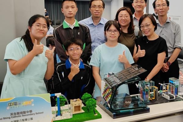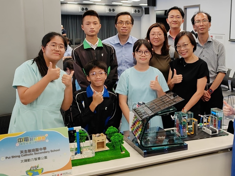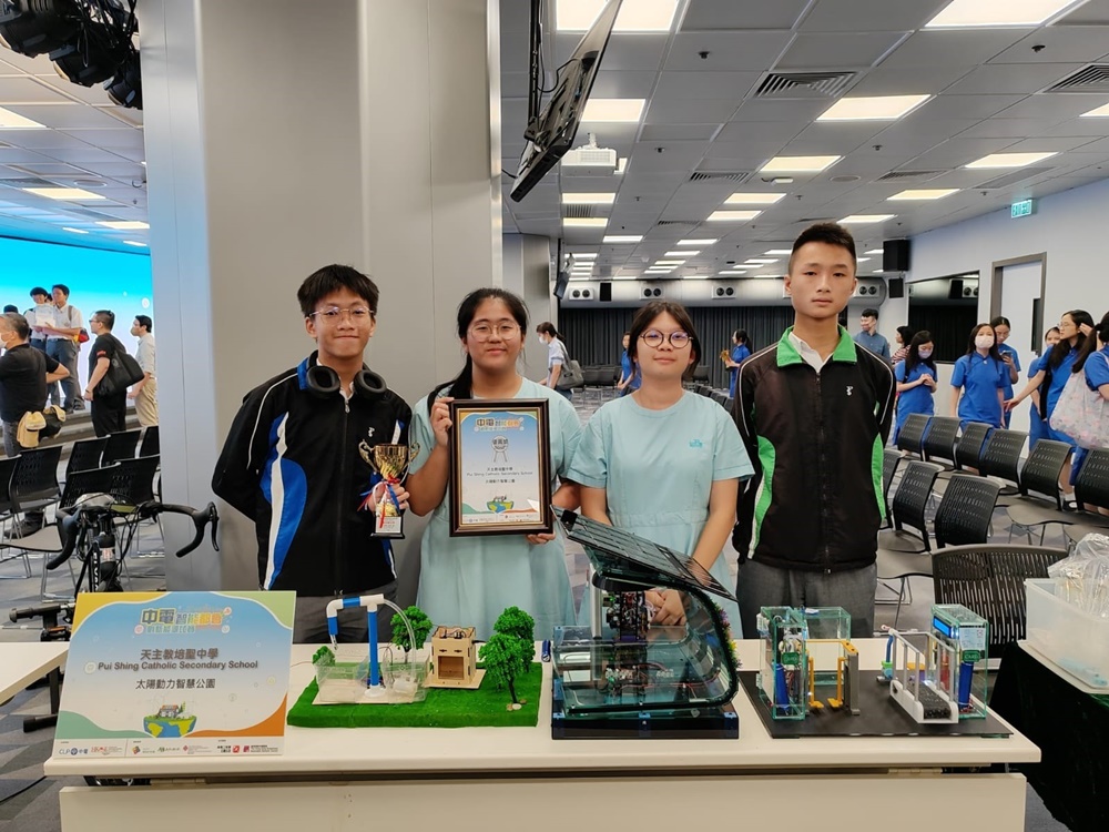 2023-08-03 我校科創藝術班同學4B何盈嫣、4B林倩行、5B朱兆邦及5D郭浚晞本年度參加由香港中華電力有限公司舉辦的「中電智能都會創新能源比賽2022-2023」中獲取優異奬及最佳模型奬。是次為全港性比賽,參賽學校多達數70多間,我校同學能夠在云云70多間學校中脫穎而出獲取佳績,實在付出了不少努力。