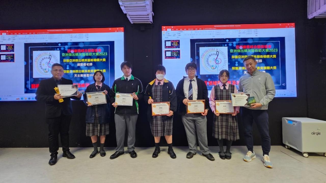 2023-12-18 本校藝術領域發展組及視覺藝術科致力推行本校藝術發展,參與由亞洲創意綜合藝術協會舉辦《亞洲傑出精英藝術節大賽2023》,透過繪畫藝術發揮藝術創意,啟發世界,表達對生命的關懷,並發揮學生於創作的過程中,感受藝術帶來的滿足感,同時通過比賽發掘學生的藝術潛能。榮獲繪畫獎項中學組《金獎》4C郭煒儀、4C楊卓霖、4E朱諾謙 榮獲繪畫獎項中學組《銀獎》4C鍾軍治、4B黃楚穎 榮獲繪畫獎項公開組《冠軍》趙堅恆老師 榮獲《亞洲傑出精英藝術導師大獎》趙堅恆老師 榮獲《亞洲傑出精英教育團體大獎》天主教培聖中學