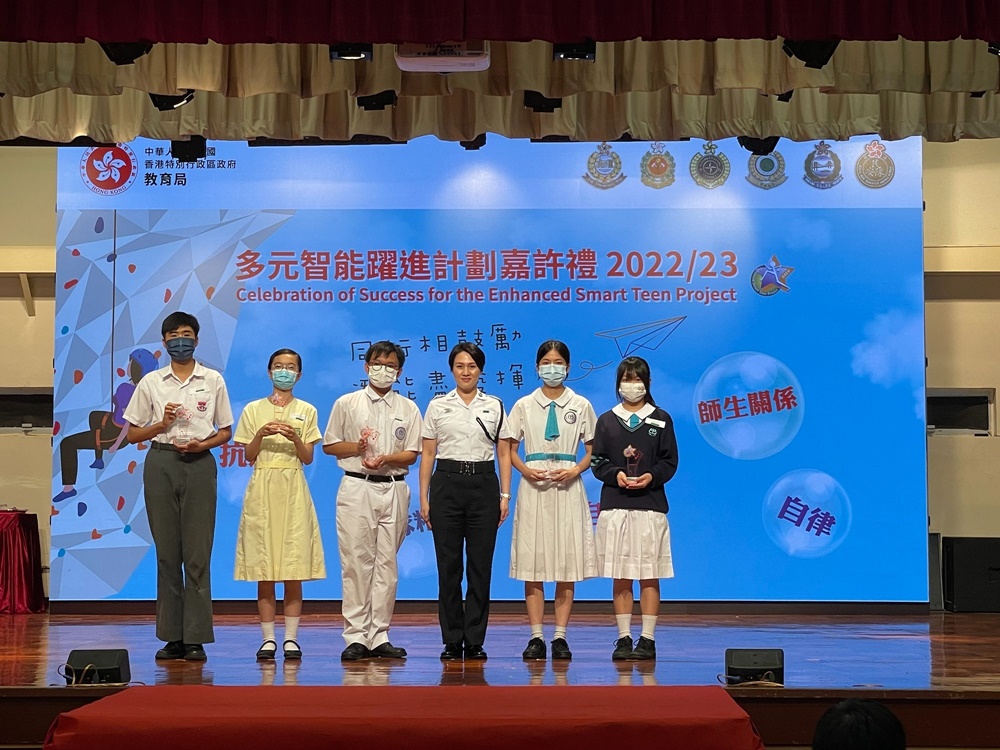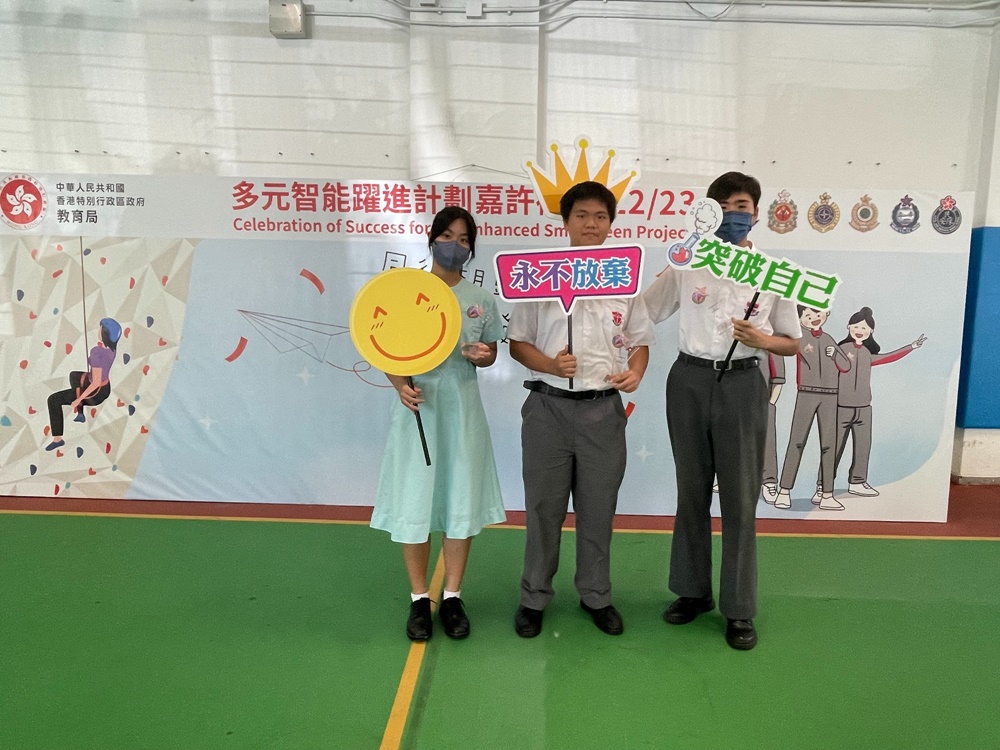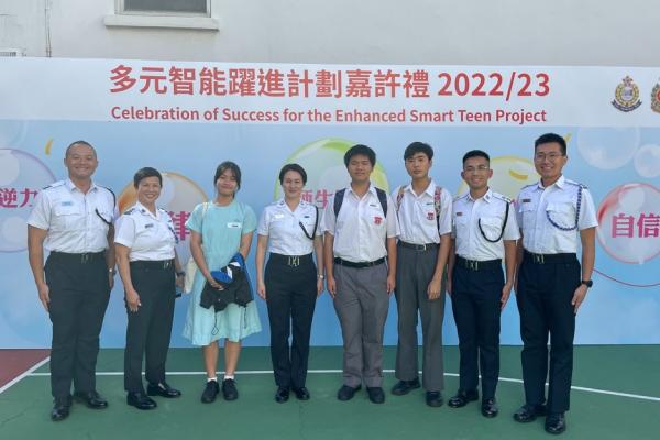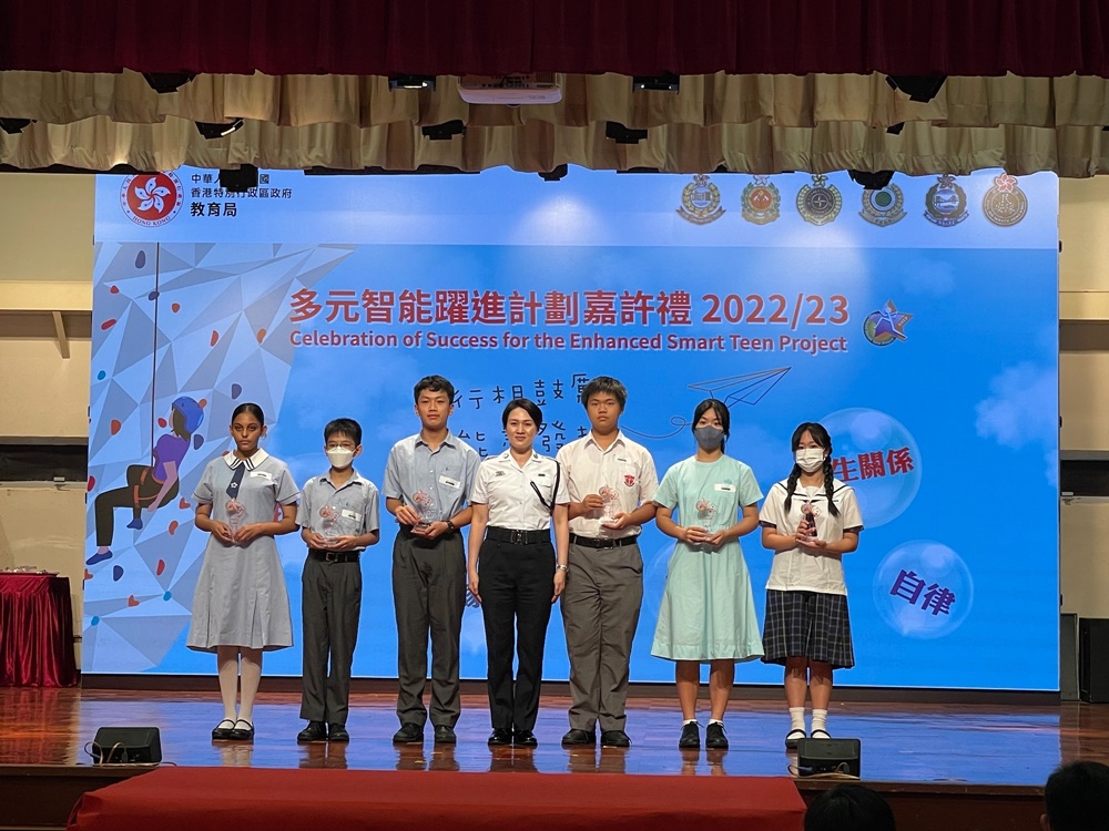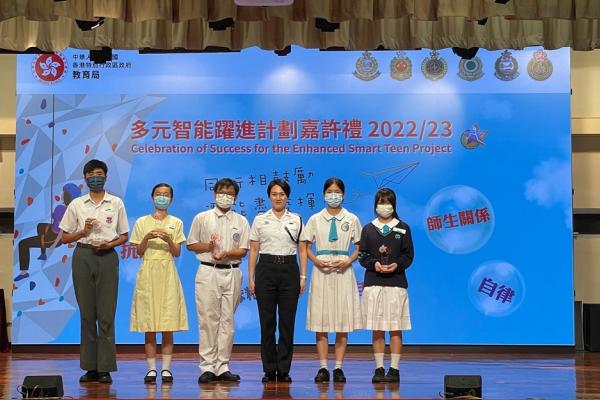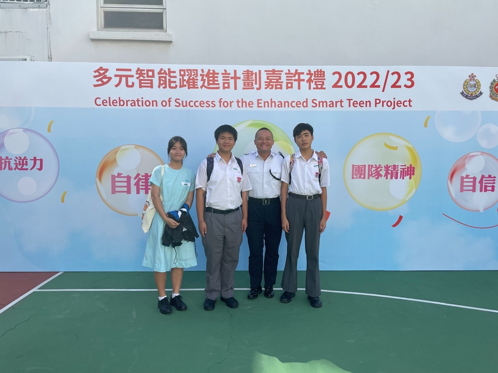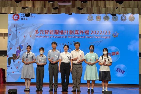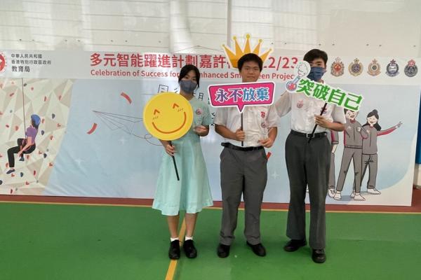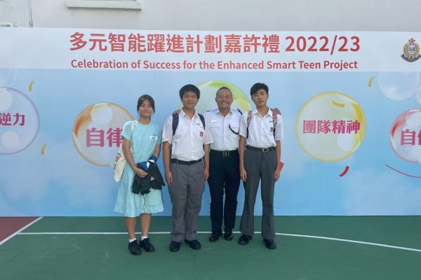 2023-09-11 本校於7月參與教育局訓育及輔導組多元智能躍進計劃22-23年度嘉許禮,本校有三位中三級同學榮獲提名優秀表現學生,分別是3A劉思恩、3B方樂文 及 3B黃景鶴同學。以上得獎同學都能在該學年做到自律、努力改善自我、積極參與校內活動,提升社交溝通技能。在嘉許禮中,有幸能再遇見訓練日營的長官們,長官們再次見到獲獎同學都感到十分欣喜,並勉勵同學們努力學習,提升自我。