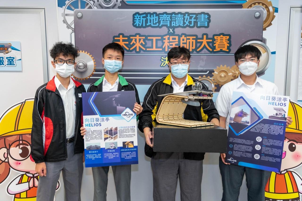 本校6B何俊傑、陳永耀、施約瑟和5B朱兆邦參加了由香港科技創新教育聯盟主辦、香港教育工作者聯會合辦的第四屆「新地齊讀好書」 X 「未來工程師大賽」。本屆賽事以「改善生活的科創點子」為題,全港共51所學校參與,本校同學憑「向日葵涼亭HELIOS」榮獲高中組的三等獎。